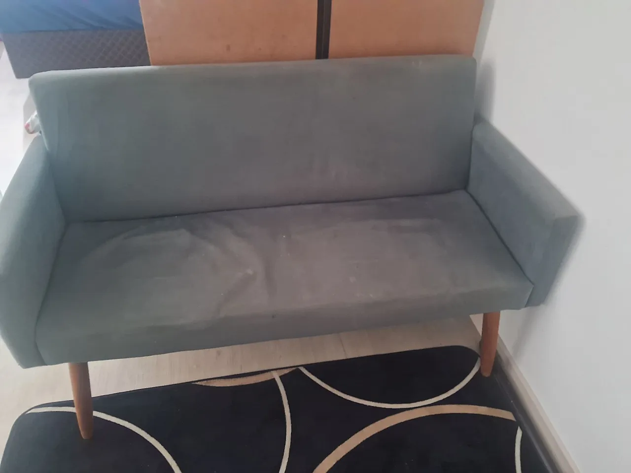 Apresentamos um sofá perfeito para espaços menores, acompanhado por uma poltrona aconchegante.