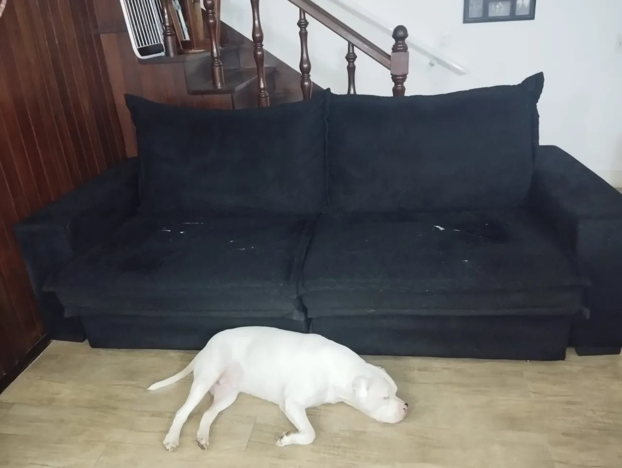 Vendo sofá retrátil com avarias. Tem alguns rasgos no assento (eu usava com uma manta) e a estrutura dos braços cedeu em algumas partes. O assento do lado direito também está meio afundadinho e ele precisa de uma boa limpeza, pois a cachorrinha da foto solta bastante pelo kkkk