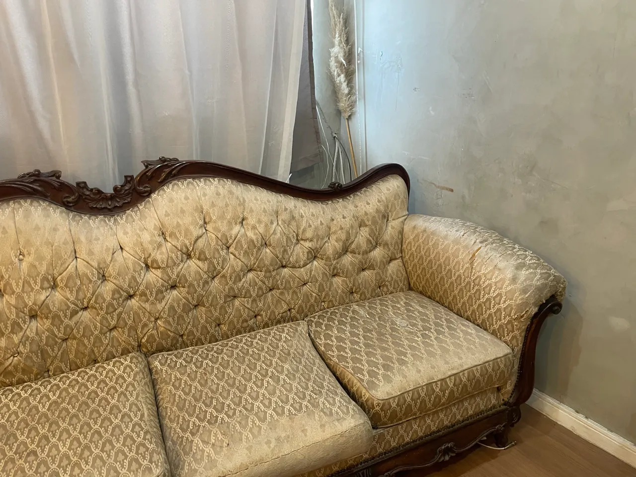 Sofá retrô antigo, perfeito para dar um toque de elegância e nostalgia à sua sala. Design clássico e charmoso, ideal para quem busca conforto e estilo vintage.