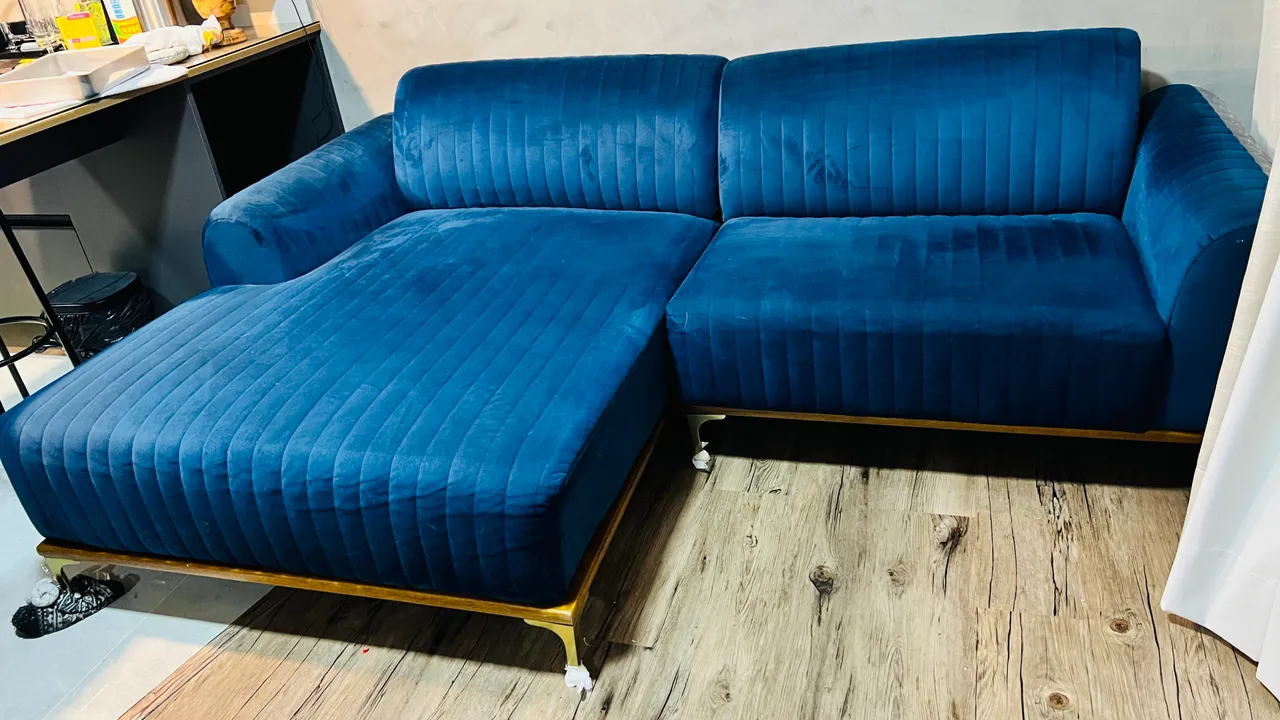 O revestimento em veludo traz um toque de elegância ao ambiente, enquanto os pés Gold valorizam ainda mais o visual contemporâneo do sofá. Ideal para salas amplas e bem decoradas.