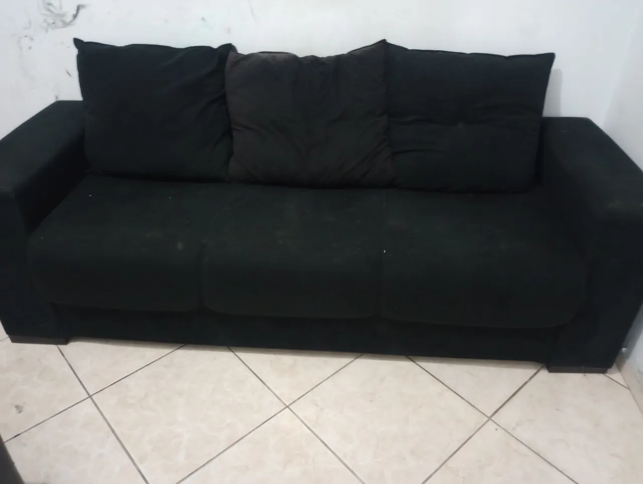 Sofá confortável e espaçoso, ideal para relaxar e receber visitas. Perfeito para sua sala!