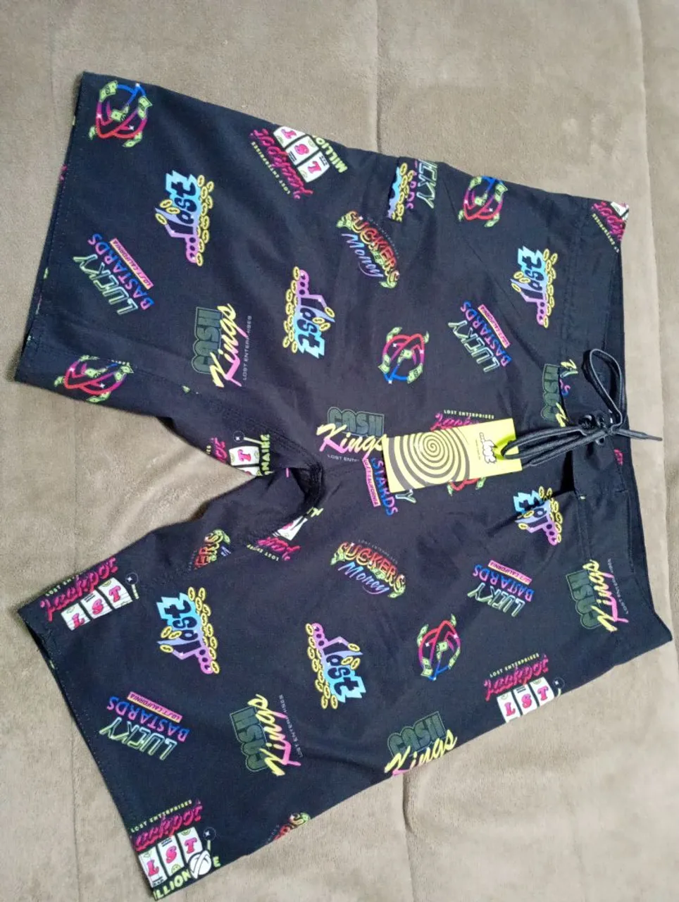 Shorts de banho masculinos Lost Enterprizes, com estampa divertida e vibrante. Perfeito para o verão! Tamanho 42 zerada sem uso