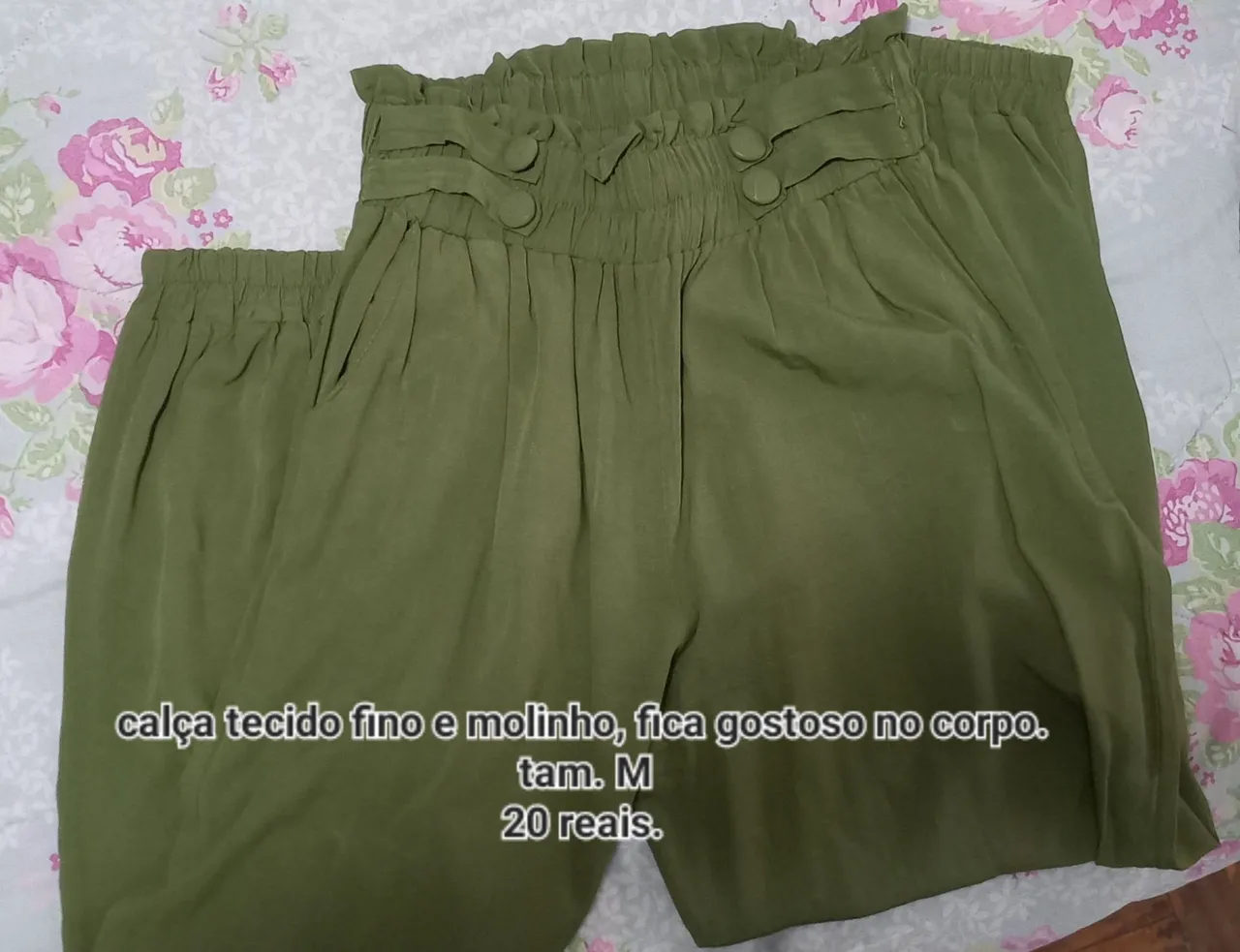 Calça verde de tecido fino e molinho, super confortável para você arrasar! Perfeita para um visual estiloso e leve.