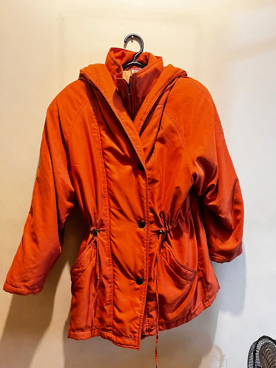 Jaqueta laranja forrada super quente possui amarração na cintura (deixando acinturado)