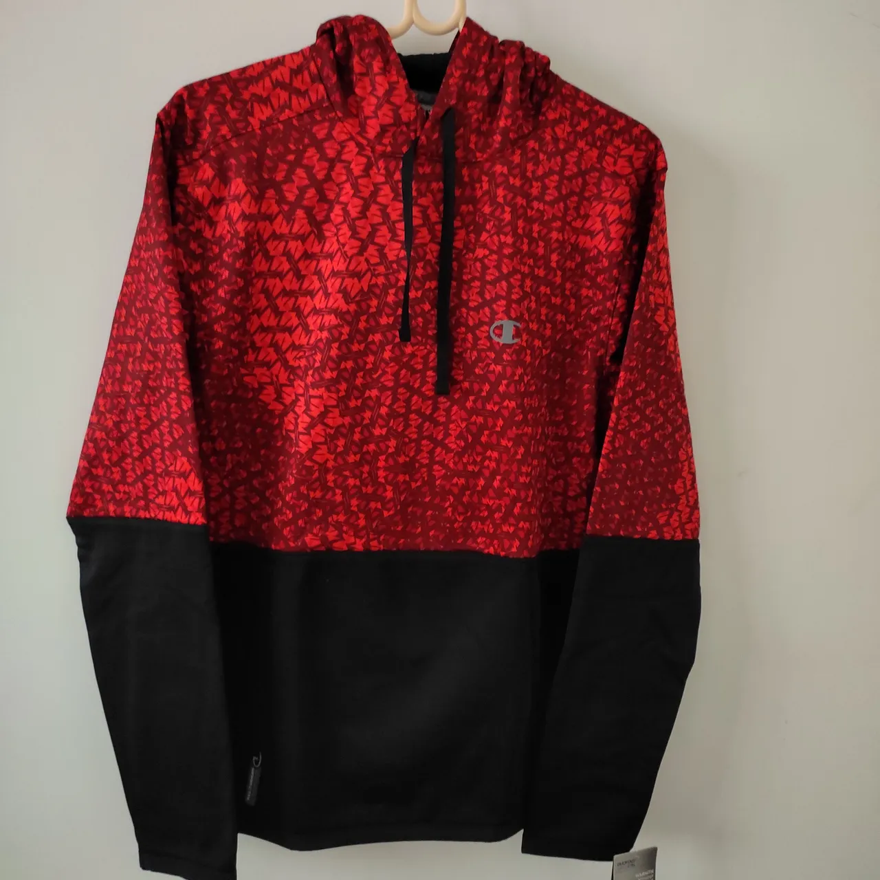 ! blusa de moletom com capuz tamanho M Champion Powerblend Block Hoodie na cor Scarlet & Black.
