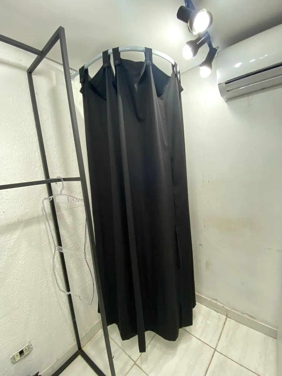 Provador com cortina preta, acompanha parafusos Tenho outros itens de loja tbm cabides, araras etc.