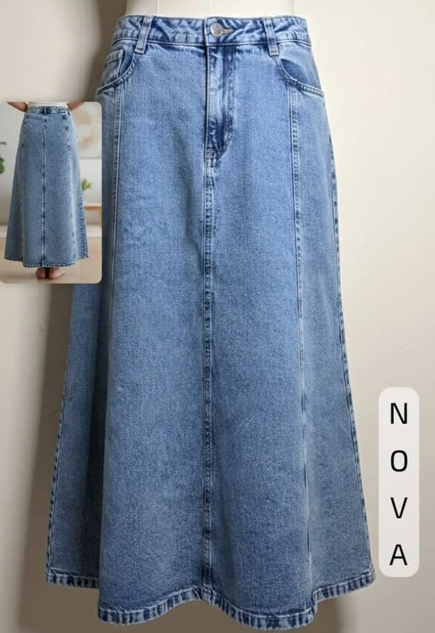 Saia longa jeans, perfeita para um visual moderno e estiloso. Feita com tecido de alta qualidade, esta saia oferece conforto e durabilidade. Seu design elegante e versátil combina com diversas ocasiões, desde um passeio casual até um evento especial.