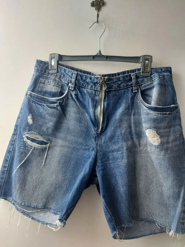 Shorts Jeans, 44 com detalhes desfiado e rasgado, com zíper na frente com argola. Retirar próximo ao Shopping Interlagos zona Sul SP entrego tb no shopping.