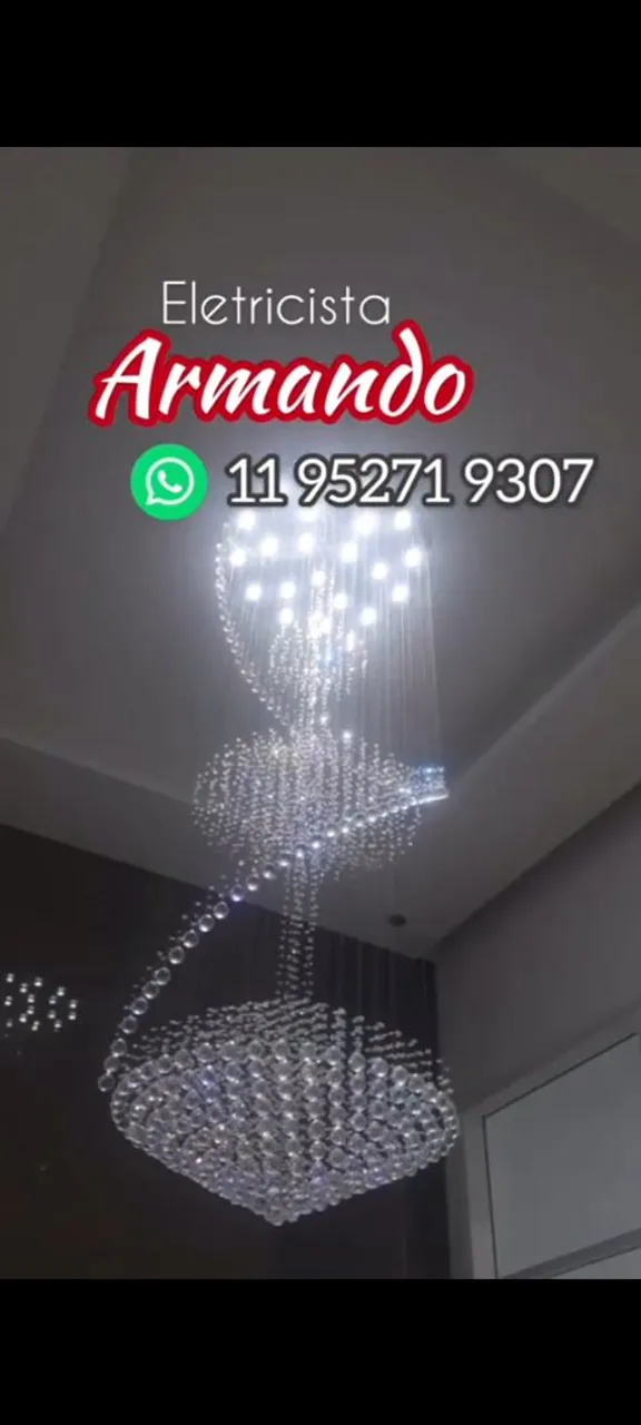 Bom dia Eu eletricista geral montador lustres e câmeras vender luminárias LED e lustres também Trabalho coisas do marido aluguel obrigado whatsapp