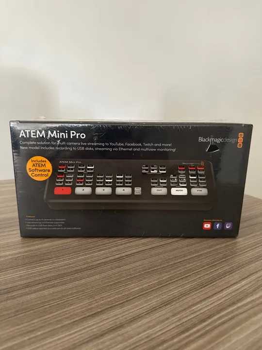 ATEM Mini Pro, a solução completa para streaming multi-câmera ao vivo para YouTube, Facebook, Twitch e muito mais! Grave em discos USB, transmita via Ethernet e monitore múltiplos vídeos. Inclui software de controle.