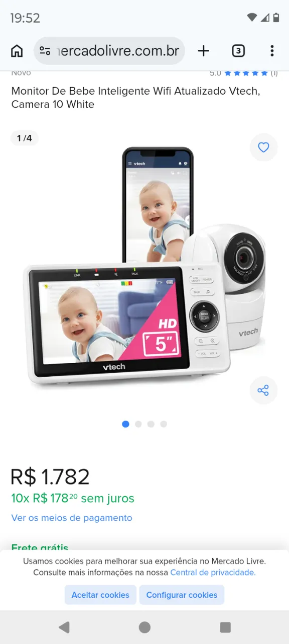 Monitore seu bebê com o Monitor de Bebê Inteligente Wifi Vtech. Com câmera 10, você terá imagens nítidas e poderá acompanhar seu bebê de qualquer lugar. Garanta a segurança e tranquilidade que você merece!