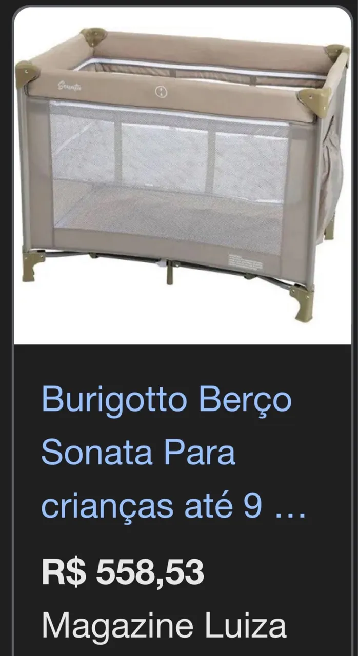 Vendo berço burigotto sonata portátil praticamente novo, usado algumas vezes por somente 2 meses.