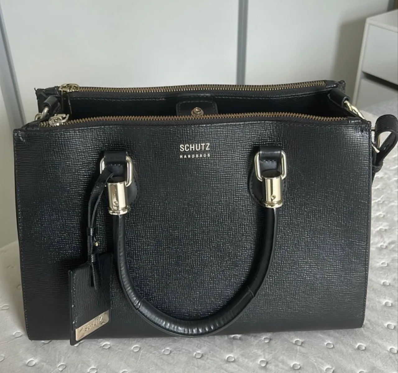 Bolsa Schutz Lorena grande, preta, couro, usada em excelente estado.