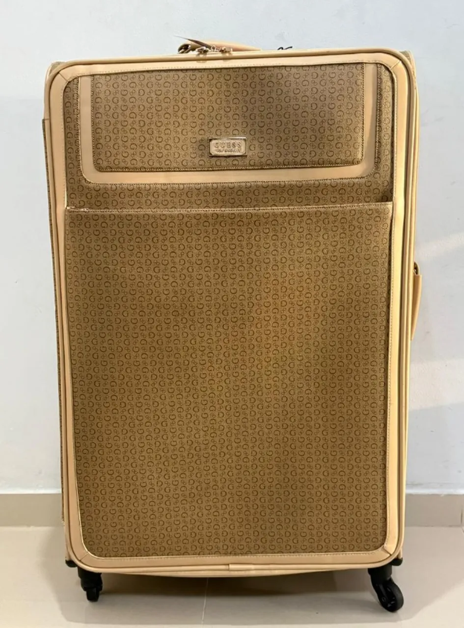 Mala de viagem gigante da Guess original, com etiquetas. Design elegante e espaçoso. Perfeita para suas viagens com estilo e praticidade, com detalhes únicos da marca. Peça usada somente uma vez, trazida esta semana dos Estados Unidos, com leves sujidade e "ralados" de transporte (a companhia aérea, não permitia a filmagem da mesma, solicite mais fotos pelo whattsap). Dimensões: altura 82 cm, largura 54 cm e profundidade 26 cm Valor sem contra oferta. Retirada em mãos, no centro de Jacareí. Pode ver sem compromisso!!!!
