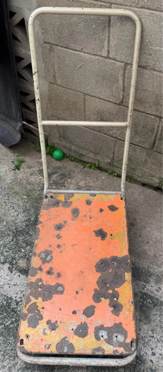 Em aço, tem algumas avarias na plataforma, mas a estrutura está conservada. Não entrego à domicílio. Moro no 31 de Março/SJC.