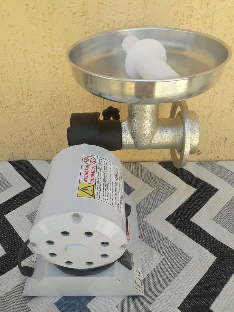 Máquina de moer carne ideal para açougues, restaurantes e outros estabelecimentos comerciais. Prepare seus alimentos com praticidade e eficiência! Com nota fiscal pouco uso bem conservado motor a cavalo bem forte 220v acompanha 8 discos 4 funil para encher linguiça e duas facas de corte aceito proposta é aceito fazer trocas depende do produto valor 900,00 reais