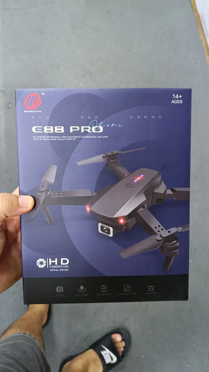 Explore novos horizontes com o Drone E88 Pro! Capture fotos e vídeos incríveis com sua câmera HD. Com design dobrável e luzes LED, é perfeito para diversão e aventura. Controle via app e desfrute de voos estáveis e fáceis.