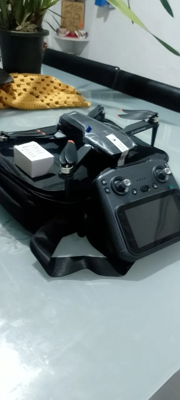 Drone completo com câmera, ideal para fotos e vídeos aéreos. Inclui controle remoto com tela integrada e hélices extras. Excelente Drone