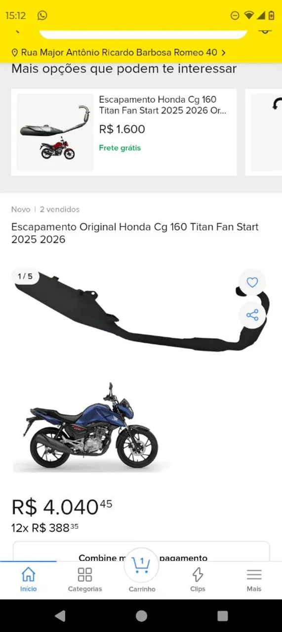 Renove o visual e o desempenho da sua CG 160 com o Escapamento Original Honda Titan Fan Start 2025/2026. Design impecável e ronco marcante. Garanta já o seu!