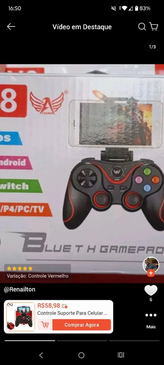 Domine seus jogos mobile com este controle gamepad Bluetooth! Compatível com Android, iOS, Switch, P4, PC e TV. Conectividade sem fio e design ergonômico para horas de diversão