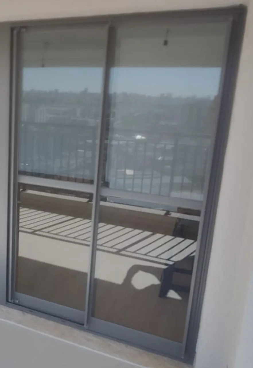 Porta alumínio 2 folhas móveis, completinha com vidro laminado 6mm