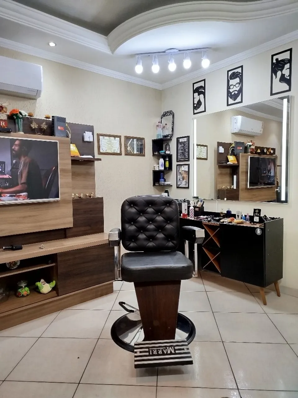 Cadeira de barbeiro com design clássico e elegante, perfeita para sua barbearia. Conforto e estilo para seus clientes.