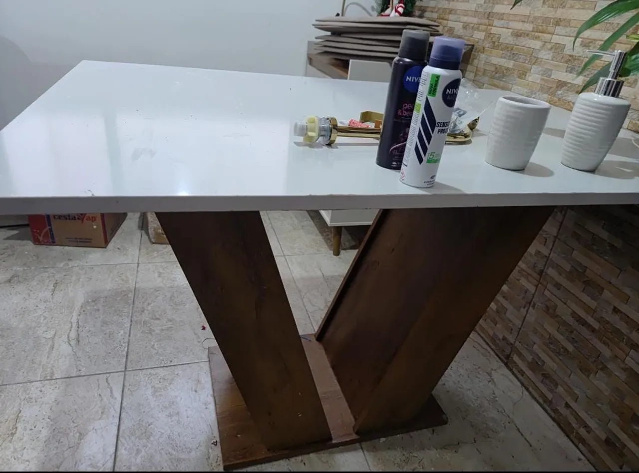 Linda mesa com design moderno e elegante. Perfeita para diversos ambientes, ideal para refeições ou trabalho. Adicione um toque de sofisticação ao seu espaço!