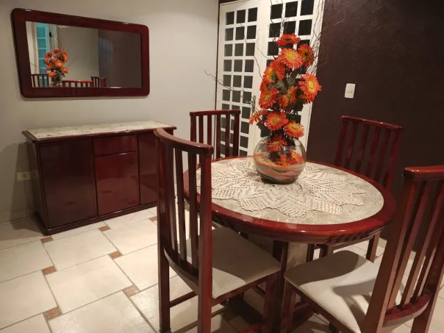 Linda sala de jantar para deixar sua casa ainda mais charmosa! Mesa redonda com cadeiras confortáveis, perfeita para reunir a família e amigos em momentos especiais.