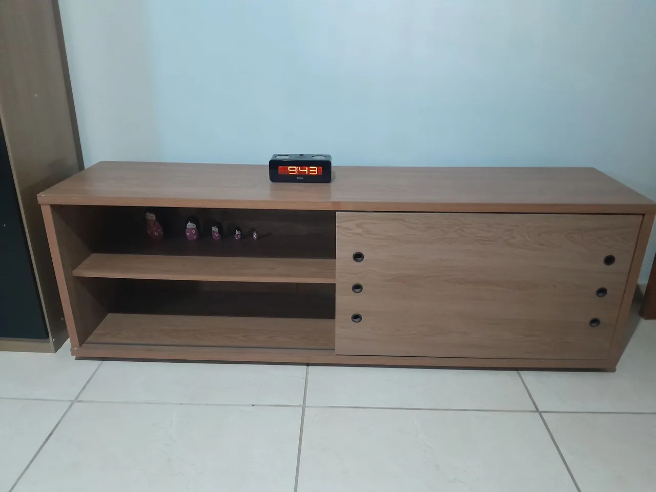Medida 1,60 X 0,39 Lindo rack de madeira, perfeito para sua sala! Com design moderno e funcional, ideal para organizar sua TV e seus aparelhos eletrônicos. Aproveite!