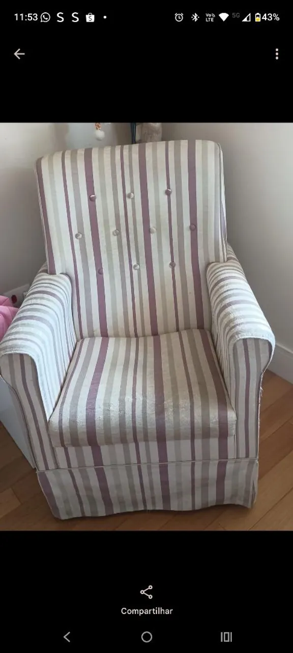 Linda poltrona com design elegante e confortável, perfeita para relaxar em qualquer ambiente. Detalhes em listras que agregam charme e sofisticação.