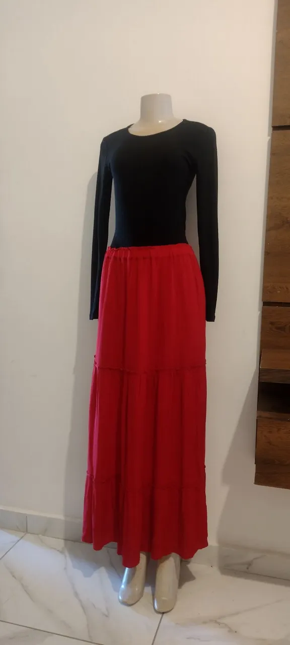 Linda saia longa, perfeita para diversas ocasiões! Seu design elegante e tecido leve proporcionam conforto e estilo. Ideal para um visual moderno e feminino.