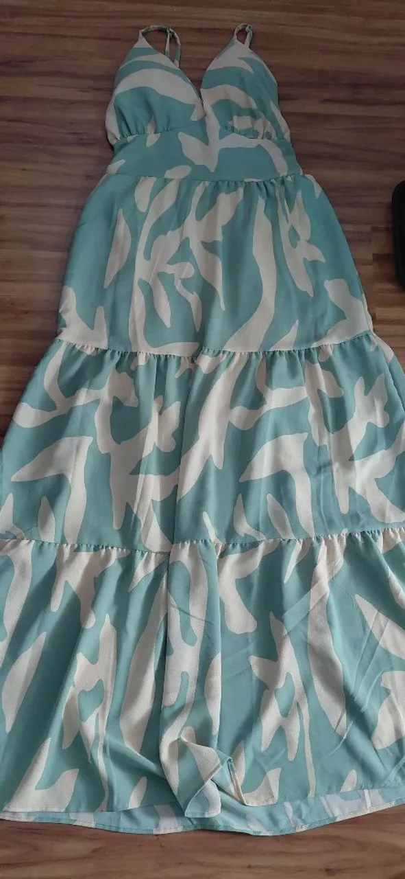 Vestido longo e elegante com estampa exclusiva. Perfeito para um visual moderno e estiloso em diversas ocasiões.